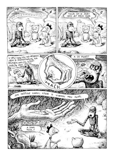 Bizarní a vtipná dobrodružství oškubaného kuřete a těžkopádnějšího medvídka ve výborném překladu Sylvie Moravcové! Nenechte se zmýlit, toto není komiks pro děti! Pitoreskní putování těchto dvou postaviček v nevlídném a surreálném světě.