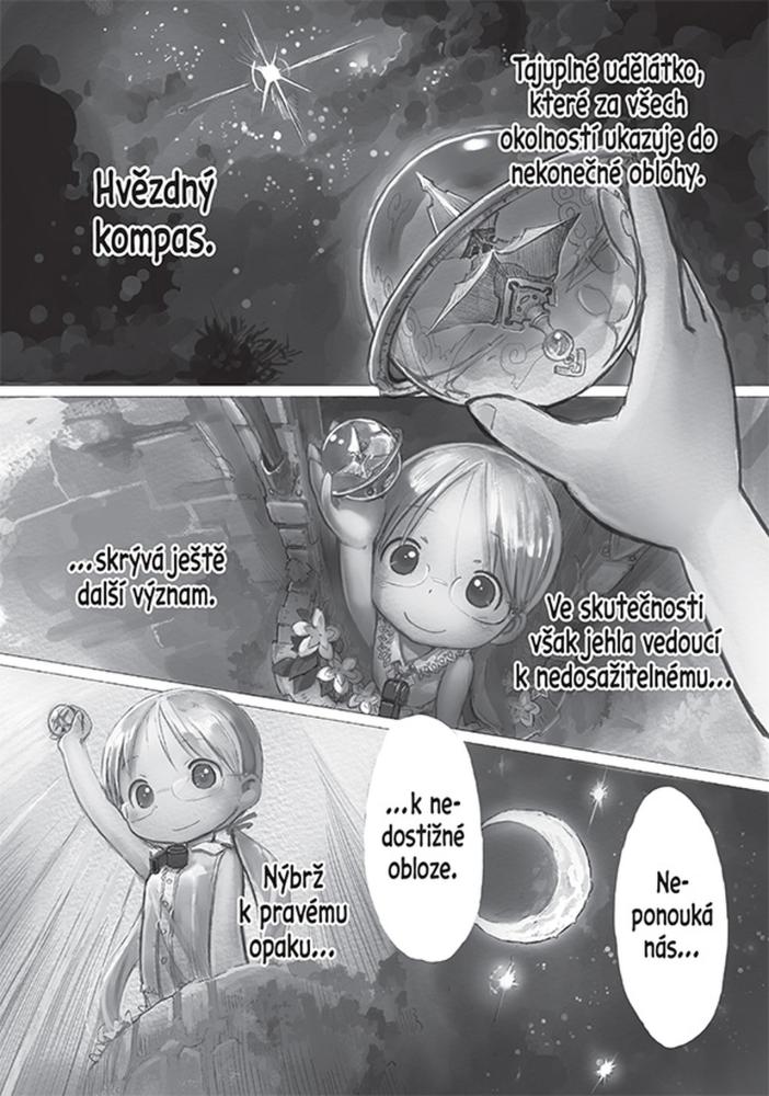 V křížem krážem procestovaném světě zůstala poslední neprobádaná rokle zvaná Propast. Jáma, jejíž hloubku se doposud nepodařilo objasnit, je domovem roztodivných stvoření a nalezištěm drahocenných artefaktů ztracených civilizací. Její tajemstvími opředená povaha uhranula lidstvo a ponoukala jej k výpravě. Dobrodruhům, kteří podlehli jejím svodům, se v průběhu věků začalo říkat průzkumníci. Ve městě Vrch, vybudovaném u chřtánu Propasti, žije osiřelá dívenka Riko. Po vzoru své matky se touží stát proslulou průzkumnicí rozkrývající taje hlubin. Když tu jednoho dne při průzkumu narazí na robota v podobě lidského chlapce... První kniha rozsáhlého dobrodružství prolínajícího fantastiku s technikou!