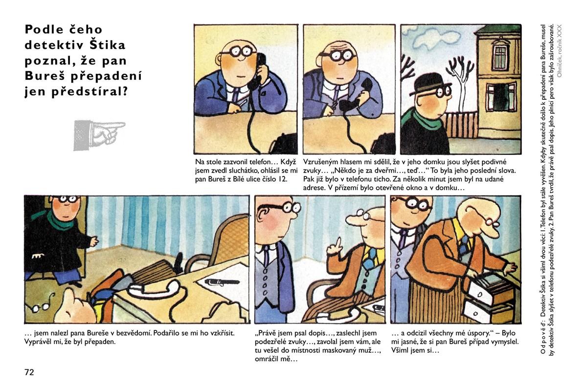 Třetí díl Otazníků detektiva Štiky doplňuje případy brýlatého detektiva vydané v prvních dvou knižních vydáních a tímto jsou Otazníky detektiva Štiky v knižní podobě kompletní. Otazníky vycházely v časopisu Ohníček v letech 1971–1986 a patřily k nejoblíbenějším příběhům tohoto časopisu. Autoři Jiří Kalousek a Jiří Lapáček dokázali na malém prostoru dvouřádkových stripů předložit zapeklité detektivní případy a záhady, při jejichž řešení si lámaly hlavu celé generace čtenářů tohoto časopisu, a my doufáme, že i dnes potěší děti a pamětníky oné doby, protože případy detektiva s tlustými obroučkami jsou stále živé a radost z vyluštění případu neopakovatelná.