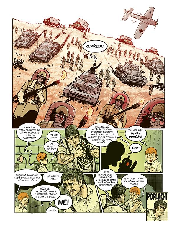Pérák se při stíhání Vernera musí dostat přes řadu překážek – třeba přes armádu wehrmachtu slídící v šumavských hvozdech po skrýši partyzánů nebo doktorem Mengele „vyšlechtěného“ slovenského supervojáka Fosforáka. Ve velkolepém finále se pak splétají linky minulosti, přítomnosti i příběhů načatých v předcházejícím grafickém románu Pérák: Oko budoucnosti. Najde Pérák vytoužený klid?