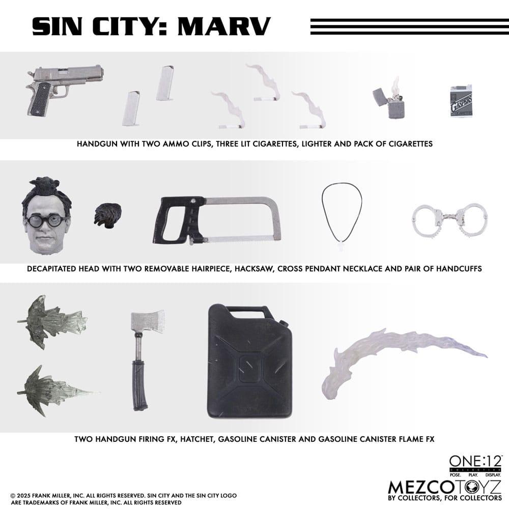 Přímo ze stránek neo-noir opusu Franka Millera přichází Marv – drsný, neúprosný a připravený na krvavou pomstu. Tato prémiová figurka od Mezco Toyz zachycuje brutálního antihrdinu z Basin City s neuvěřitelnou věrností a bohatou výbavou.