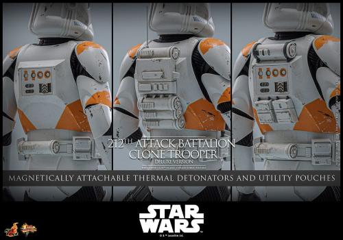 Sideshow a Hot Toys s nadšením představují 212. Útočný Batalion Clone Trooper™ Collectible Figure (Deluxe Version) v měřítku 1/6. Tato figurka s rozšířenou výbavou představuje klonové vojáky, kteří pod velením generála Obi-Wana Kenobiho a Clone Commandera Codyho sehráli klíčovou roli v bitvě o Utapau, a to i po tragickém vydání Rozkazu 66.