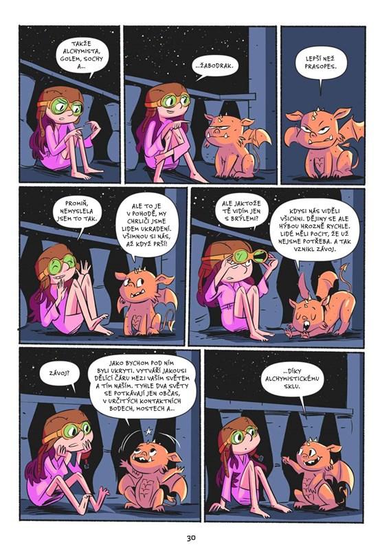 Stella se právě přestěhovala do Prahy a je z toho pěkně otrávená. Škola nic moc, město je jedna velká nuda – staré domy, oprýskané fasády a všude sochy. Jenže pak na půdě najde něco, co jí otevře oči… a vstup do jiného světa.