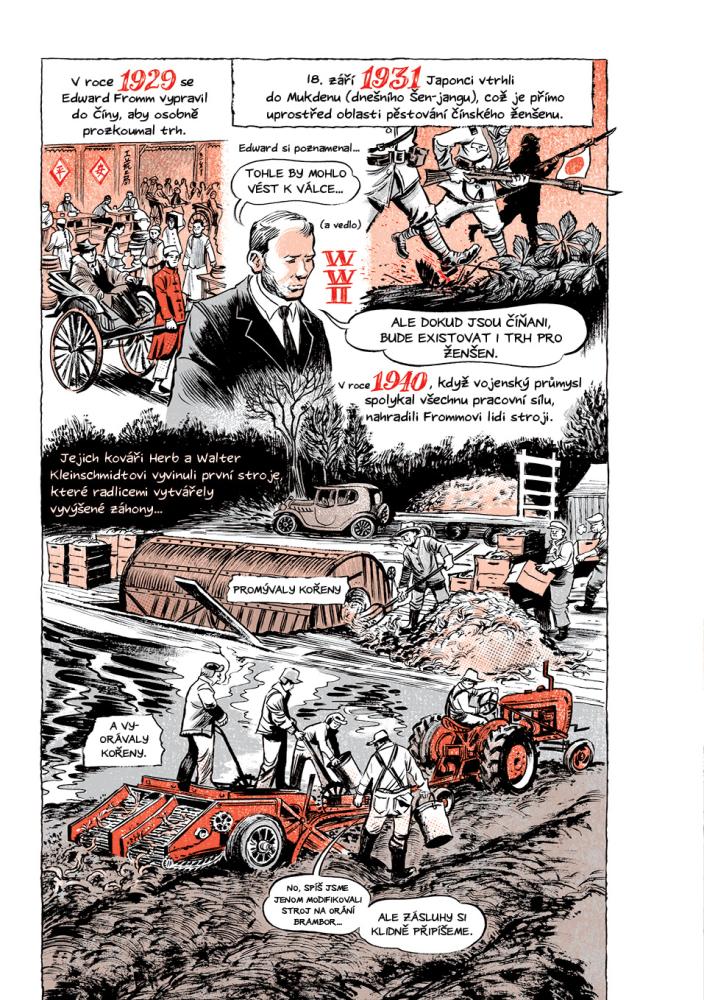 Ženšenové kořeny sledují dětství Craiga a jeho sourozence, kteří trávili léta svého mládí na polích tolik vyhledávaného amerického ženšenu ve Wisconsinu. Kvůli zdravotním problémům Craig později znovuobjevuje tuto zázračnou bylinu známou díky čínské medicíně a vydává se na neobyčejnou cestu z amerického středozápadu až do severovýchodní Číny. Ženšenové kořeny prodchnuté živou zemitou paletou barev mistrně kombinují memoáry, cestopis a kulturní historii. Autor se skrz ně dotýká otázek kreativity, pochybností, sebeuzdravení a rodiny.